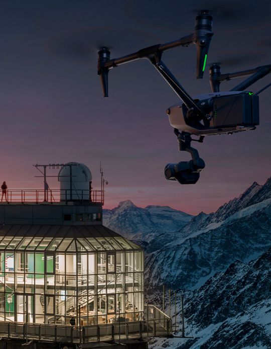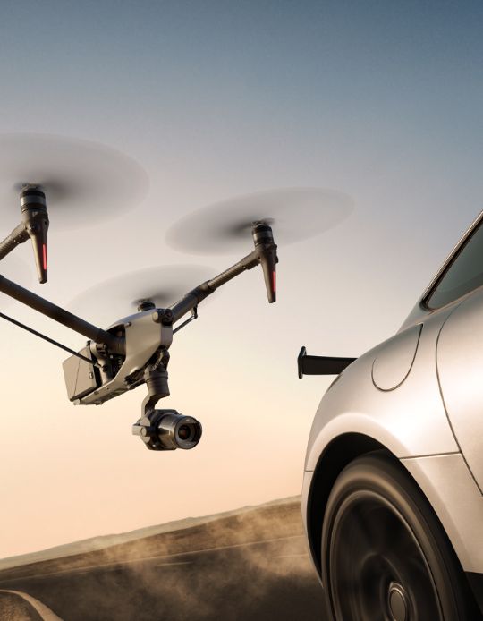 We fly with professional cameras as Alexa Mini, Red, and DSLR, ultra prime lenses, and HD transmission.
